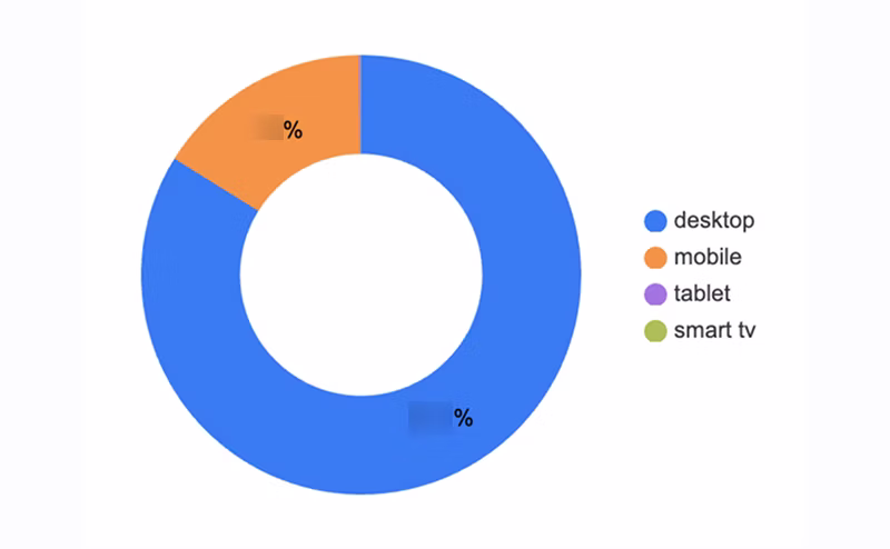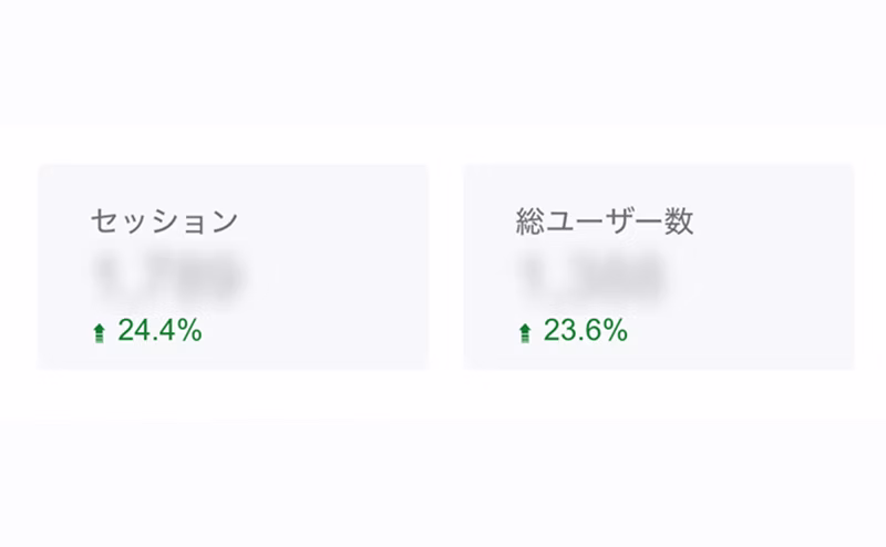 円グラフ等を用いたデバイス比率や、新規・リピーターの可視化。単純な数字の羅列ではイメージしづらい「割合の変化」が一目でわかります。