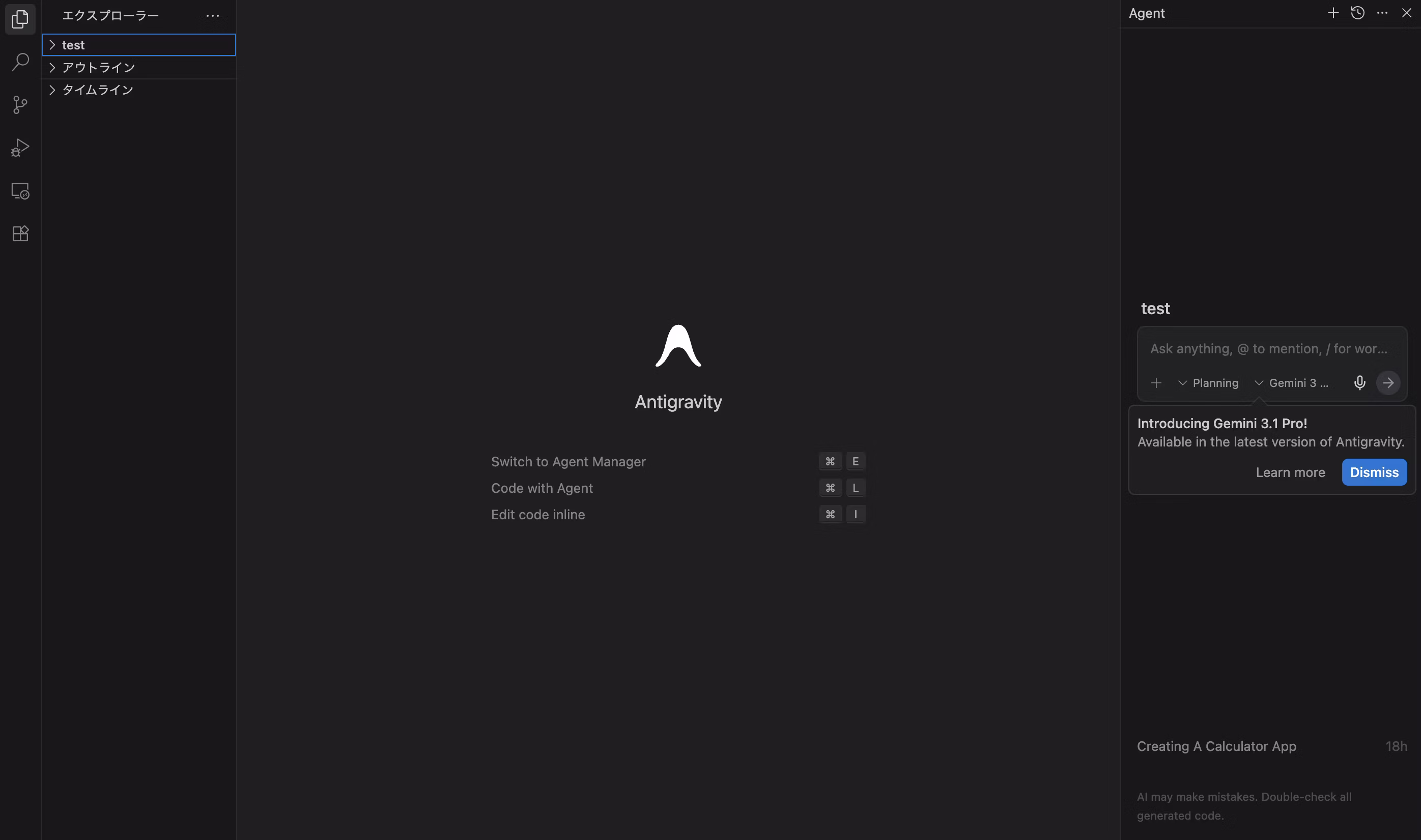 以前はJulesについての記事(https://www.liberogic.jp/topics/20250602-jules/ )を書きましたが、こちらとの違いなども比較しながらAntigravityを試せということで「もう半年前のことだし、うちはClaude Codeで標準化してんのになんでやねん!」と思いつつ少しだけ遊んでみました。